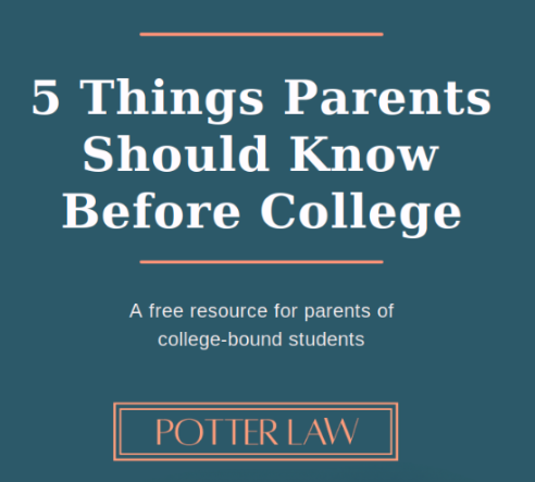 A free resource for parents of college-bound students. Covers the five things families are most often surprised by: FERPA and privacy rules, student conduct systems, Title IX, disability accommodations, and what parents can do when a problem comes up. Written by Nancy Potter, education attorney and former Supervisory Attorney at the U.S. Department of Education, Office for Civil Rights.